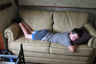 After a filling but not gluttonous lunch the decision was made they’d follow us the three minutes back to our trailer. Greg was feeling ill from his sunburn and the kids weren’t that far behind him. It ended up Greg took a nap on our bed, Kylla slept on the living room couch and Tyler on the rear bedroom couch.