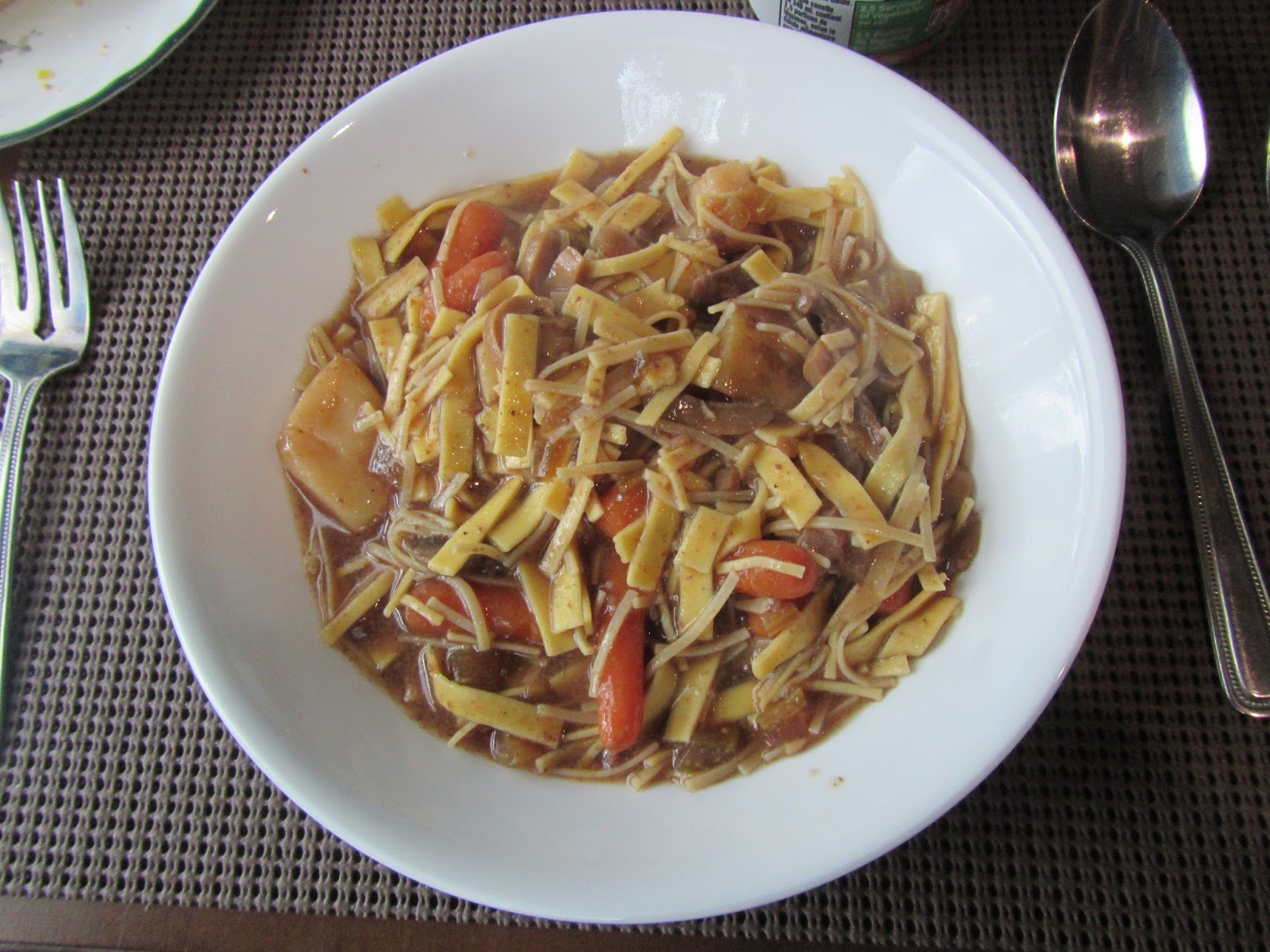 Kathy used the last of the Homemade Beef Stew on a bed of Egg Noodles which made for a very tasty