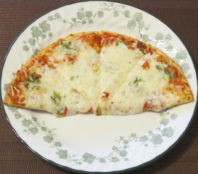 We shared a Store Bought Medium Thin Crust Pizza that I added extra Mozzarella Cheese to for supper.